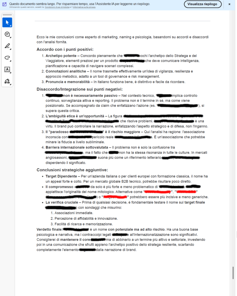 Ho stampato il PDF dopo averlo eseguito e l’ho inviato al mio amico che… ha validato l’utilità di questo prompt.